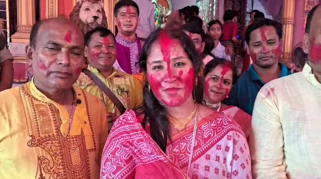 নিজস্ব সংবাদদাতা, মালদা—- বিজয়া দশমীতে সিঁদুর খেলায় মাতলেন বিজেপির বিধায়ক গোপালচন্দ্র সাহা ও পুরাতন মালদহ পঞ্চায়েত সমিতির সভাপতি রুম্পা রাজবংশী সরকার। পুরাতন মালদহের সমাজ কল্যাণ সমিতিতে এই মুহূর্তে চলছে সিঁদুর খেলা ও নাচ।