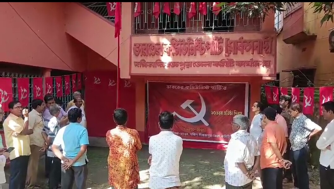 দক্ষিণ দিনাজপুর, নিজস্ব সংবাদদাতাঃ- অবিভক্ত কমিউনিস্ট পার্টির ১০৬ তম প্রতিষ্ঠা দিবস পালিত হলো শুক্রবার। রাজ্যজুড়ে সি পি আই (এম) র সব দপ্তরে পার্টির প্রতিষ্ঠা দিবস উদযাপন করা হয়। দক্ষিণ দিনাজপুরের বালুরঘাটে সি পি আই (এম) জেলা দপ্তর যামিনী মজুমদার ভবনে পতাকা উত্তলন ও শহীদ বেদিতে মাল্যদানের মধ্য দিয়ে কর্মসূচি শুরু হয়। এদিন দক্ষিণ দিনাজপুরের জেলা সম্পাদক নন্দলাল হাজরা সকালের কর্মসূচিতে অবিভক্ত কমিউনিস্ট পার্টির ইতিহাস সহ বর্তমানে দেশের প্রেক্ষাপটে কমিউনিস্টদের দ্বায়িত্ব ও কর্তব্য সম্পর্কে সংক্ষিপ্ত আকারে অবহিত করেন। তিনি দেশ তথা কেন্দ্রের জনবিরোধী সরকার ও রাজ্যের দুর্নীতিগ্রস্ত সরকারকে আগামী ২০২৬ সালের ভোটে উৎখাত করার আহবান জানান। এদিন বালুরঘাটের কর্মসূচিতে উপস্থিত ছিলেন জেলা সম্পাদক নন্দলাল হাজরা, জেলা নেতৃত্ব শিবতোষ চ্যাটার্জি, পরিমল সরকার, অনিমেষ চক্রবর্তী প্রমুখ।