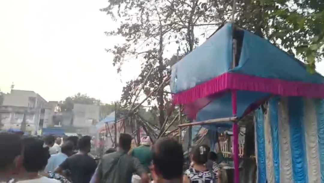শর্ট সার্কিট থেকে আগুন! নৈহাটী রেলমাঠে পুজোমণ্ডপের পাশে দাউদাউ করে জ্বলল ষ্টল।