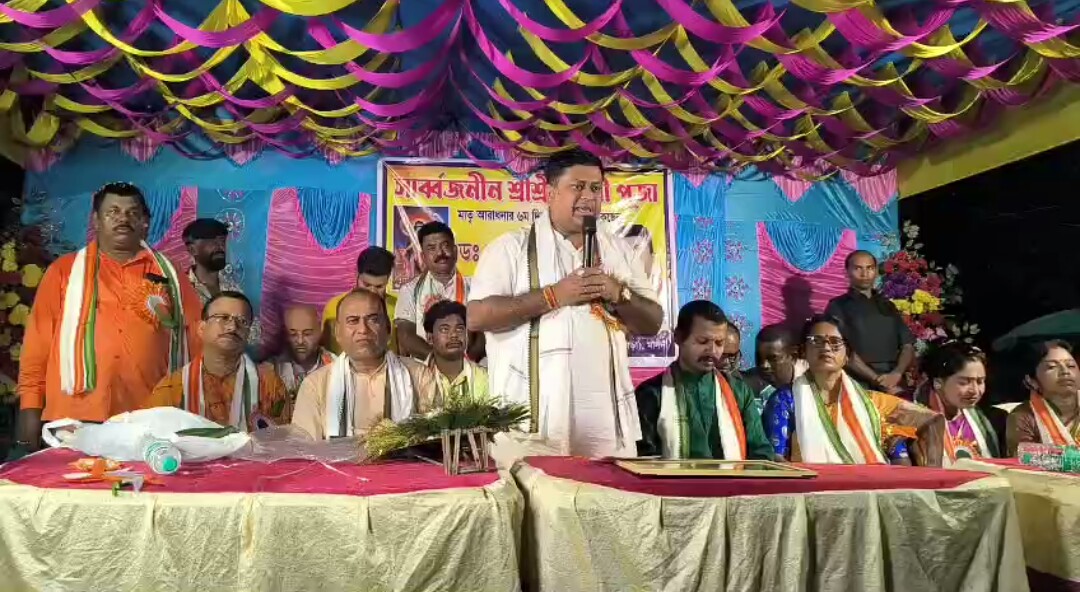 প্রথমে প্রতিমন্ত্রী মণ্ডপ প্রাঙ্গণে এসে দেবী কালীর পায়ে ফুল অর্পণ করেন। এরপর অনুষ্ঠানের মঞ্চে উপস্থিত প্রতিমন্ত্রী সহ অতিথিদের সংবর্ধনা জানানো হয় এবং প্রতিমন্ত্রী সুকান্ত মজুমদার গ্রামবাসীদের সাথে সাক্ষাতে কথা বলেন , এবং গ্রামবাসীরা গ্রামের বিভিন্ন উন্নয়নের জন্য প্রতিমন্ত্রী সুকান্ত মজুমদারের কাছে দাবি রাখেন।