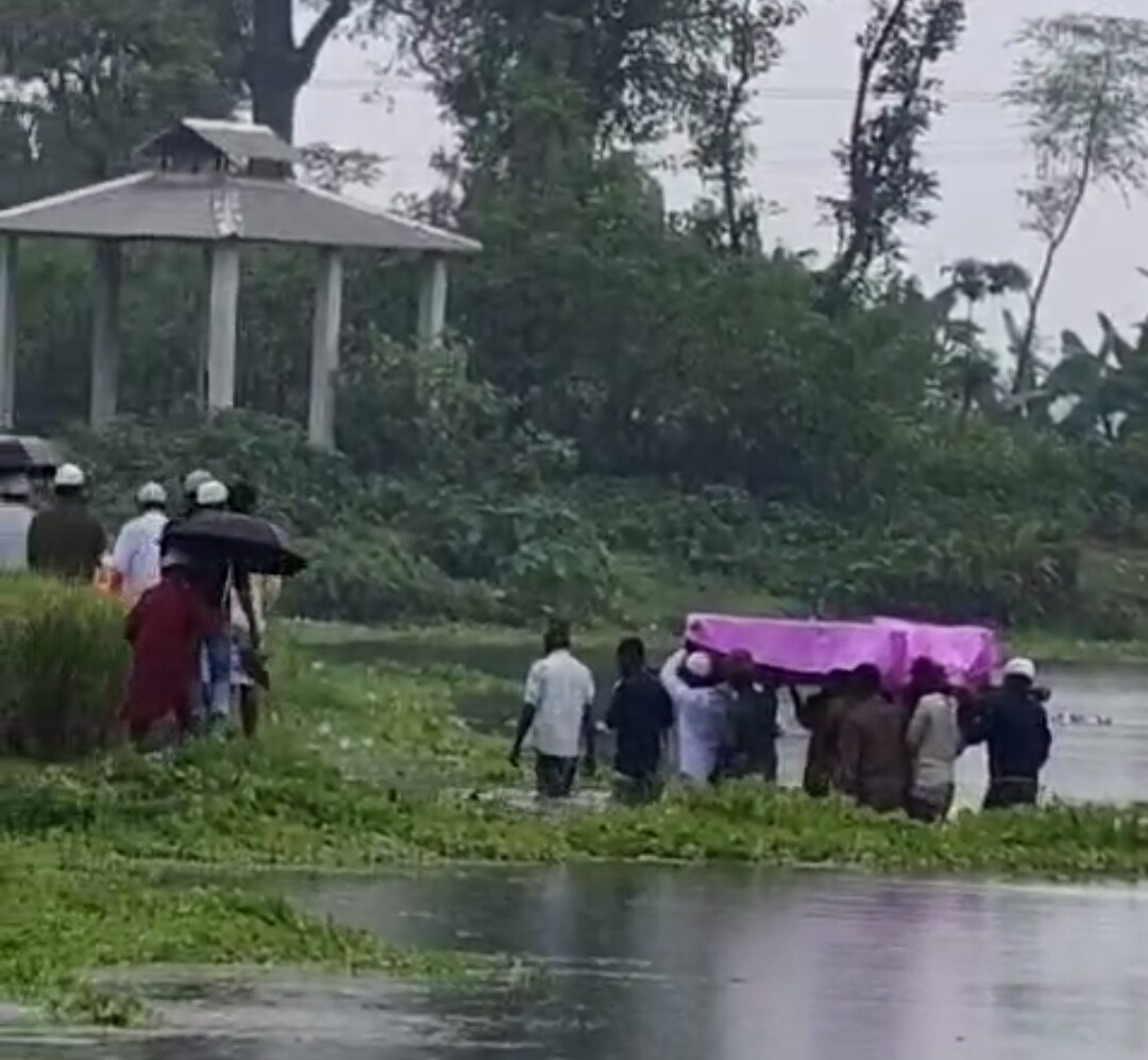 মালদা, নিজস্ব সংবাদদাতাঃ – কবরস্থান ও শ্মশানে যাওয়ার রাস্তা বন্ধ করে দেওয়া হয়েছে বলে অভিযোগ। অন্য পথ না থাকায় মরা মহানন্দার এক কোমর জল ভেঙে কবরস্থানে নিয়ে যেতে হল শবদেহ এমনি ভিডিও ভাইরাল যদিও এই ভিডিওর সত্যতা যাচাই করেনি সংবাদ মাধ্যম । চরম দুর্ভোগের এই চিত্র দেখা গেল হরিশ্চন্দ্রপুর ১ ব্লকের তুলসীহাটা গ্রাম পঞ্চায়েতের বসতপুর গ্রামে।