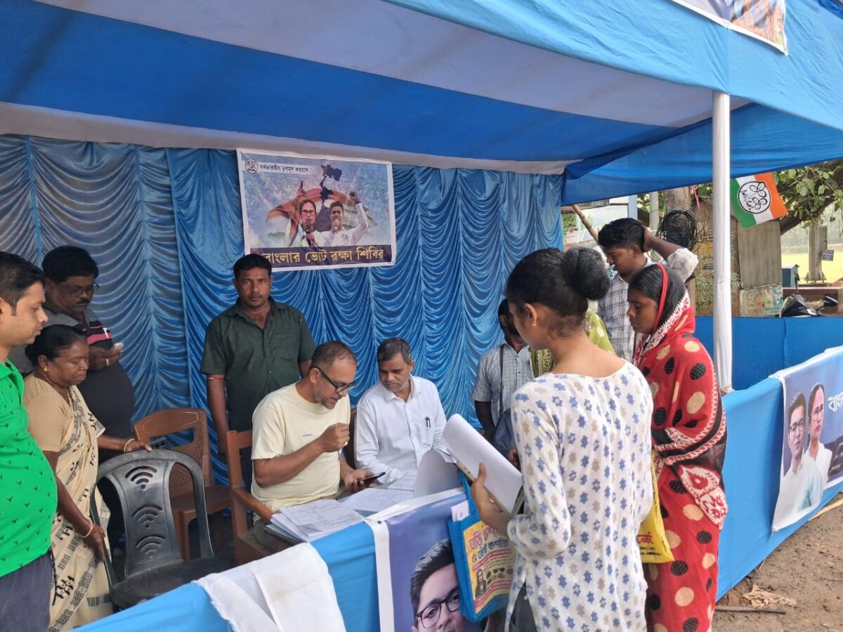 পশ্চিম মেদিনীপুর, নিজস্ব সংবাদদাতাঃ- রাজ্যজুড়ে শুরু হয়েছে SIR,অন্যদিকে রাজ্য তৃনমূলের পূর্ব ঘোষিত কর্মসূচি অনুযায়ী তৃণমূলের তরফ থেকে প্রত্যেকটি অঞ্চলে ভোট রক্ষা শিবিরের আয়োজন করা হয় মঙ্গলবার থেকে,এই দিন পশ্চিম মেদিনীপুর জেলার গড়বেতা তিন নম্বর ব্লকের সাত নম্বর অঞ্চলের নয়াবসতে তৃণমূলের ভোট রক্ষা শিবিরে উপস্থিত ছিলেন শালবনী বিধানসভা কেন্দ্রের বিধায়ক তথা রাজ্যের প্রতিমন্ত্রী শ্রীকান্ত মাহাতো, এছাড়াও উপস্থিত ছিলেন অঞ্চল তৃণমূল কংগ্রেসের সভাপতি কৌশিক ঘোষ, উপপ্রধান বিনোদ রম, গ্রাম পঞ্চায়েতের প্রধান জল সিং,অঞ্চল যুব সভাপতি প্রহ্লাদ মাহাত ,সনৎ হাঁসদা সহ অন্যান্য তৃণমূল কর্মীরা। এই দিন এলাকার মানুষজনের SIR সম্পর্কিত বিভিন্ন নথি পরীক্ষা-নিরীক্ষা করেন তৃণমূল কর্মীরা।