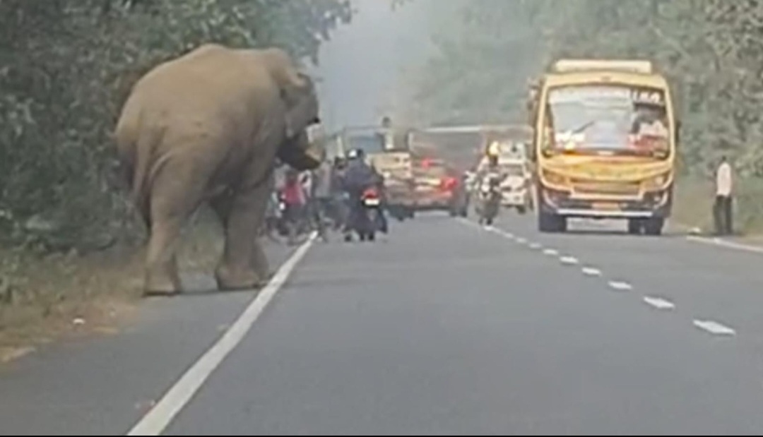 গড়বেতা, নিজস্ব সংবাদদাতা:- পশ্চিম মেদিনীপুর জেলার গড়বেতার জঙ্গল থেকে বেরিয়ে ৬০ নম্বর জাতীয় সড়কের উপর দলছুট দাঁতাল হাতি,ঘটনায় বেশ কিছুক্ষণ জাতীয় সড়ক অবরুদ্ধ হয়ে পড়ে,মঙ্গলবার দুপুর নাগাদ এমনই চিত্র উঠে এলো,জানা গিয়েছে এই দিন দলছুট একটি দাঁতাল হাতি গড়বেতা জঙ্গলে প্রবেশ করার আগেই সতর্কতা জারি করেছিল বনদপ্তর,এই দিন দুপুর নাগাদ হঠাৎই ওই দলছুট দাঁতাল হাতিটি জাতীয় সড়কের উপর উঠে যায়,বেশ কিছুক্ষণ কেরামতি দেখানোর পর অবশেষে পুনরায় জঙ্গলে প্রবেশ করলে ফের জানি চলাচল স্বাভাবিক হয়। ঘটনায় আতঙ্কের বাতাবরণ সৃষ্টি হয়েছে এলাকা জুড়ে।