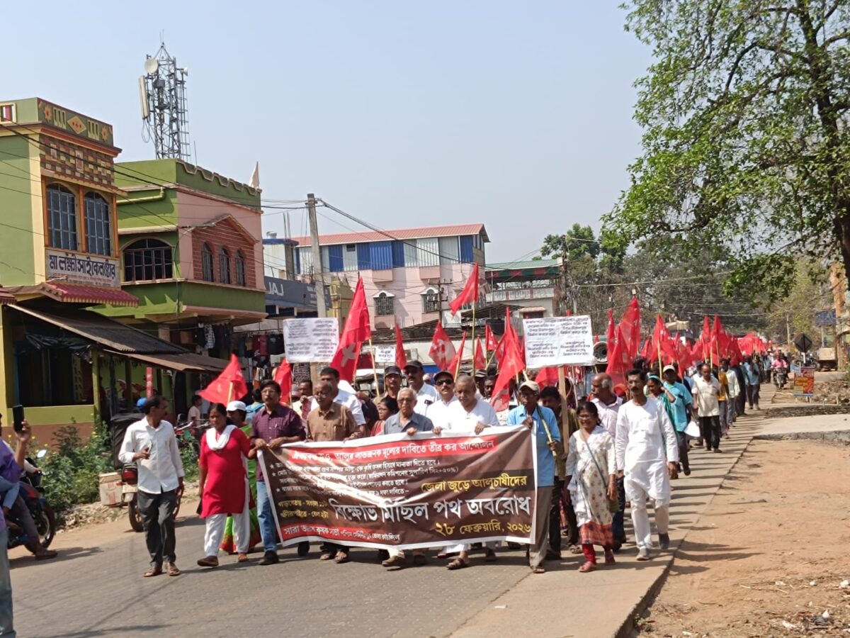 পশ্চিম মেদিনীপুর, নিজস্ব সংবাদদাতা:- প্রতী কিলো আলুর সহায়ক মূল্য ১২ টাকা করার দাবি সহ ৯ দফা দাবি নিয়ে শনিবার পশ্চিম মেদিনীপুর জেলার গড়বেতা এক নম্বর ব্লকের গড়বেতা শহরে বিক্ষোভ মিছিল ও পথ অবরোধ করলো বাম সংগঠনের সারা ভারত কৃষক সভা। এই দিন গরবেতা শহরের ফতেসিংপুর থেকে এই মিছিল বেরিয়ে ৬০ নম্বর জাতীয় সড়কের উপর আলু ঢেলে বিক্ষোভ প্রদর্শন করল বাম সংগঠনের সারা ভারত কৃষক সভা। এই দিন এই কর্মসূচিতে উপস্থিত ছিলেন তরুণ রায়,তাপস সিনহা, সনৎ চক্রবর্তী, তপন ঘোষ, সামেদ গায়েন, দিবাকর ভূঁইয়া সহ একাধিক জেলা ও ব্লক নেতৃত্ব। এই দিন এই কর্মসূচিতে কয়েকশো বাম সংগঠনের কর্মী সমর্থক সামিল হয়েছেন।