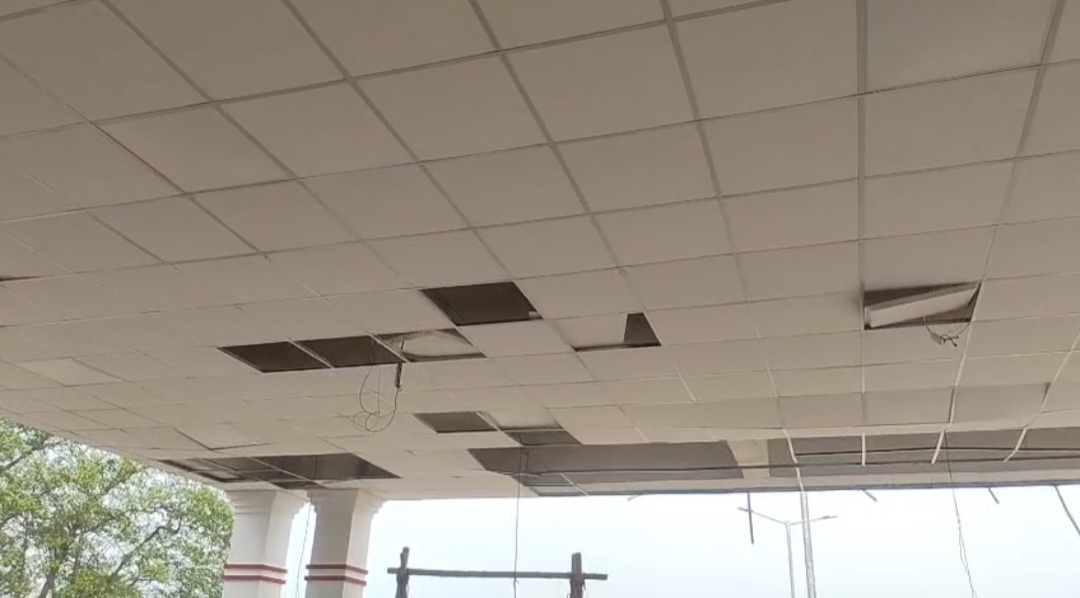 বালুরঘাট স্টেশনে সিলিং বোর্ড ভেঙে পড়ার অভিযোগ, নিম্নমানের কাজ নিয়ে বিতর্ক।